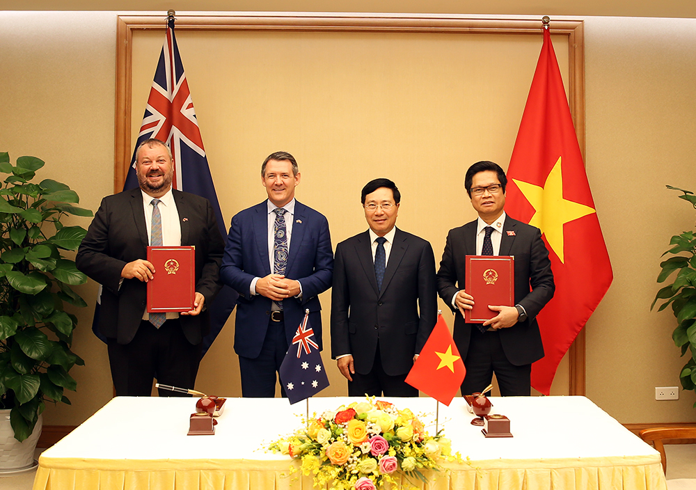 Nhân dịp này, Phó Thủ tướng Phạm Bình Minh đã cùng Thủ hiến Vùng Lãnh thổ Bắc Australia chứng kiến Lễ ký Bản ghi nhớ hợp tác giữa Phòng Thương mại và Công nghiệp Việt Nam và Phòng Thương mại Vùng Lãnh thổ Bắc Australia, tạo khuôn khổ hợp tác giữa các doanh nghiệp hai bên trong thời gian tới.