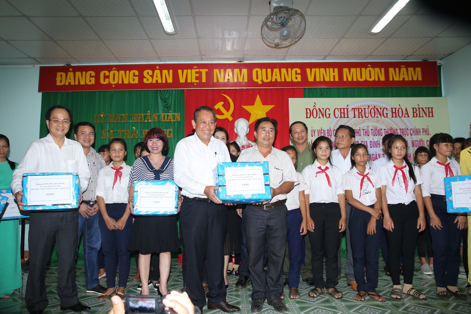 Nhân dịp này, Phó Thủ tướng Thường trực Chính phủ Trương Hoà Bình, Chủ tịch Danh dự Quỹ bảo trợ học sinh dân tộc thiểu số, học sinh nghèo hiếu học của báo Công an nhân dân thay mặt các nhà hảo tâm trong cả nước đã trao tặng 50 xe đạp cho các em học sinh trong huyện và 187 phần quà (gần 200 triệu đồng) cho các em học sinh trường dân tộc nội trú huyện Tây Trà.