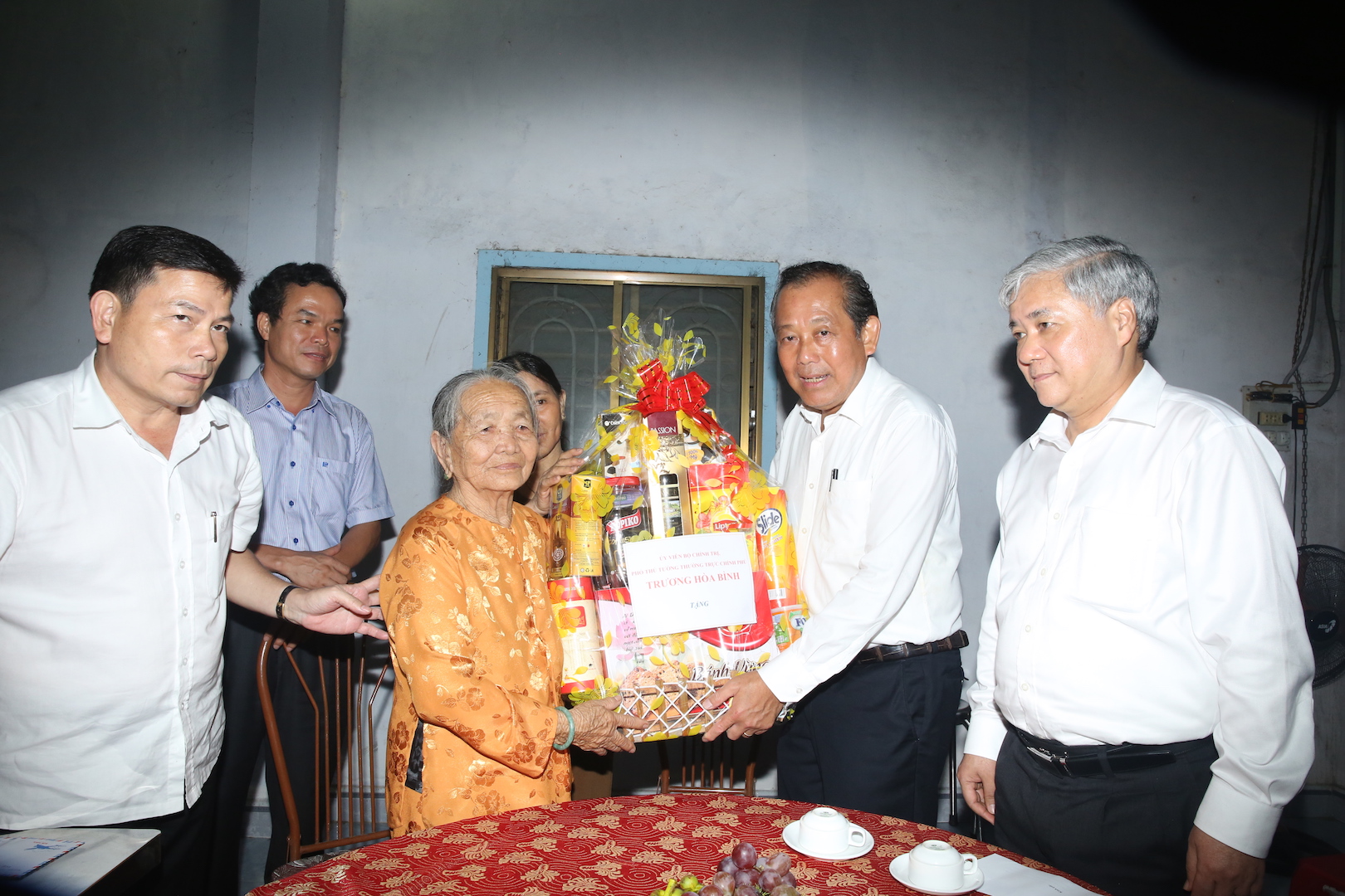 Phó Thủ tướng Thường trực Chính phủ Trương Hòa Bình thăm hỏi, động viên Mẹ Việt Nam anh hùng Bùi Thị Hồng. Ảnh: VGP/Lê Sơn