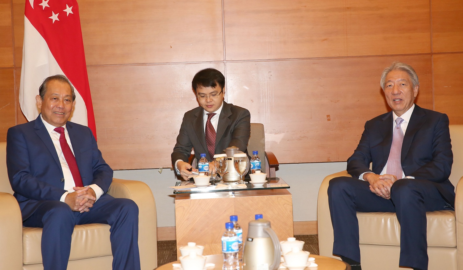 Lãnh đạo hai bên đánh giá cao kết quả hợp tác giữa hai nước thời gian qua trong lĩnh vực quốc phòng, an ninh và pháp luật. Lãnh đạo Singapore mong muốn hai bên tiếp tục tăng cường trao đổi, giao lưu giữa các lực lượng thuỷ, lục, không quân, phối hợp tìm kiếm cứu nạn, phòng chống khủng bố, tội phạm xuyên quốc gia, nhất là tội phạm ma túy. Hai bên nhất trí tiếp tục tăng cường hợp tác phòng chống tham nhũng và tương trợ tư pháp, thúc đẩy phối hợp chặt chẽ hơn nữa giữa các cơ quan hành pháp, lập pháp và tư pháp hai nước, cả song phương và trong các khuôn khổ đa phương.