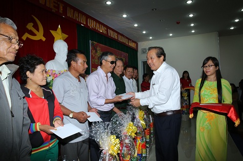 Nhân dịp này, thay mặt Chính phủ và Thủ tướng Chính phủ, Phó Thủ tướng Thường trực đã trao 50 suất quà của Chính phủ đến các Bà mẹ Việt Nam Anh hùng, các thương bệnh binh, gia đình chính sách, các hộ nghèo đồng bào dân tộc thiểu số trong tỉnh. Đồng thời, Phó Thủ tướng mong muốn người dân trong tỉnh tiếp tục tự lực, tự cường vươn lên trong cuộc sống, cùng với sự hỗ trợ kịp thời, có hiệu quả của các cấp, các ngành để xây dựng cuộc sống ngày càng ấm no, hạnh phúc.