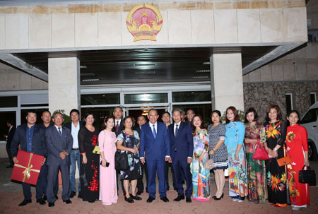 Phó Thủ tướng Thường trực chúc Đại sứ quán và bà con cộng đồng người Việt Nam luôn dồi dào sức khỏe, đoàn kết, thành công trong cuộc sống, đóng góp nhiều hơn nữa cho quan hệ tốt đẹp giữa hai nước.