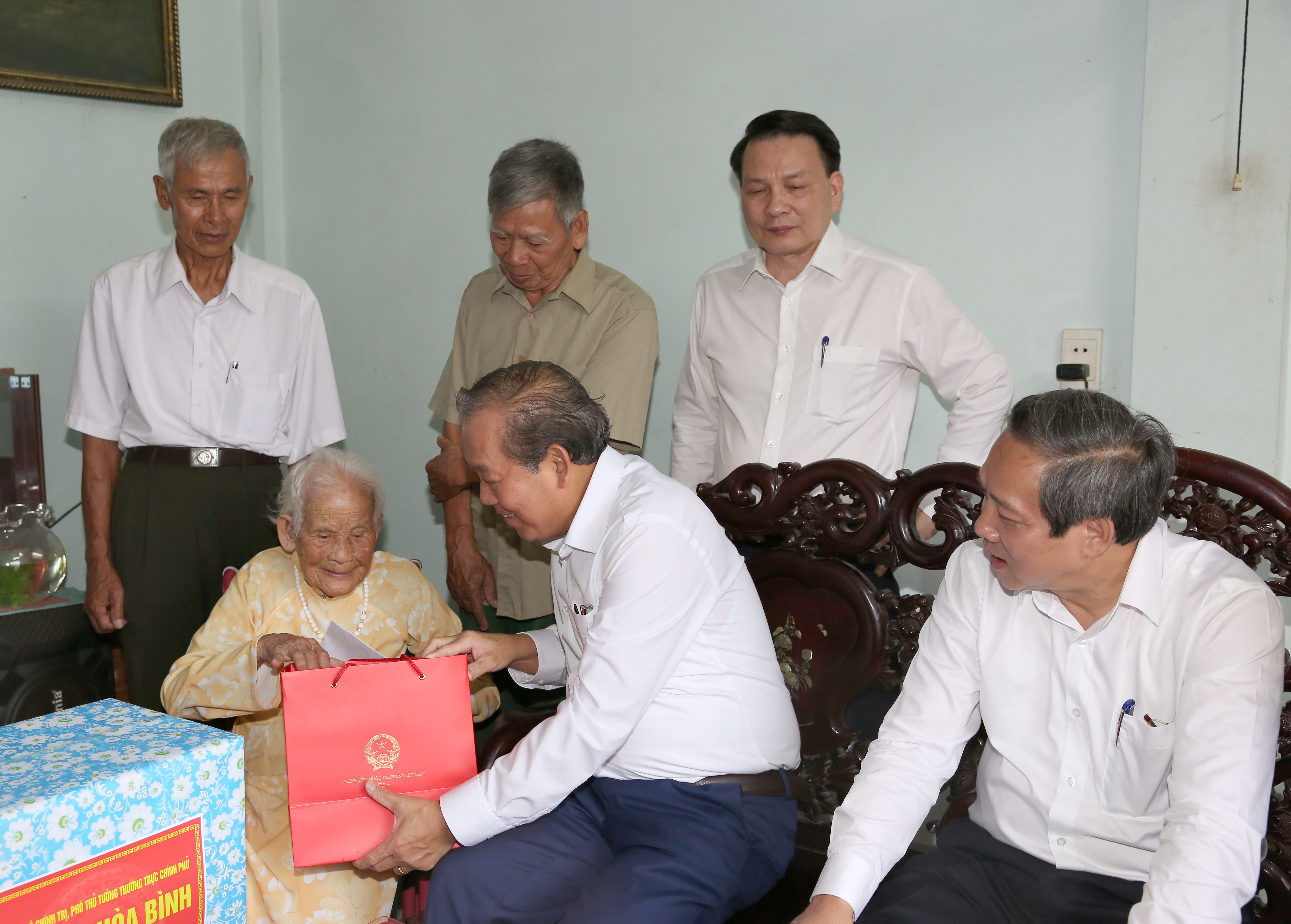 | Phó Thủ tướng Trương Hoà Bình thăm Mẹ Việt Nam anh hùng Hà Thị Viễn - Ảnh: VGP/Lê Sơn |