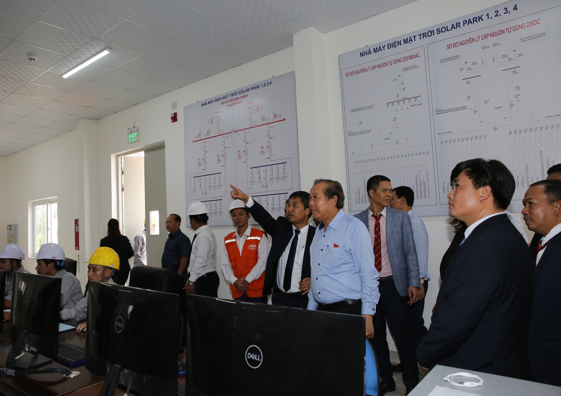 | Phó Thủ tướng Thường trực Chính phủ Trương Hòa Bình thăm Dự án điện năng lượng mặt trời Viet Nam Solar Park trên địa bàn huyện Đức Huệ. Ảnh: VGP/Mạnh Hùng |