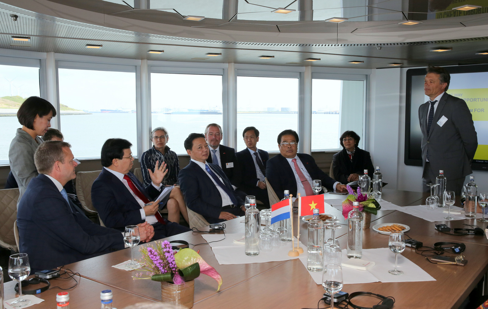 Trong buổi làm việc với Chính quyền cảng Rotterdam, Phó Thủ tướng thông báo phía Hà Lan về Quy hoạch phát triển hệ thống cảng biển của Việt Nam đến 2020 và định hướng đến 2030; nhấn mạnh mong muốn Hà Lan chia sẻ với Việt Nam những kinh nghiệm quý giá về xây dựng và quản lý cảng biển; mong muốn Chính quyền cảng Rotterdam sớm triển khai hợp tác sâu rộng tại Việt Nam trong lĩnh vực quy hoạch cảng và dịch vụ vận tải hậu cần.