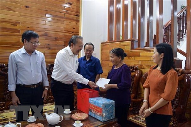| Phó Thủ tướng thường trực Trương Hòa Bình thăm, tặng quà gia đình bà Y Ngợp ở thành phố Kon Tum, sáng 19/10. (Ảnh: Cao Nguyên/TTXVN) |