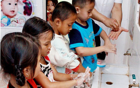 Trường Mầm non B (quận Hoàn Kiếm) có trên 500 trẻ. Ngay từ đầu tháng hai, trường đã tuyên truyền để phụ huynh khi gửi con biết về tình hình dịch bệnh tay chân miệng, cảm cúm, sốt xuất huyết... đồng thời yêu cầu giáo viên phải rửa tay, rửa mặt cho trẻ trước khi ăn.