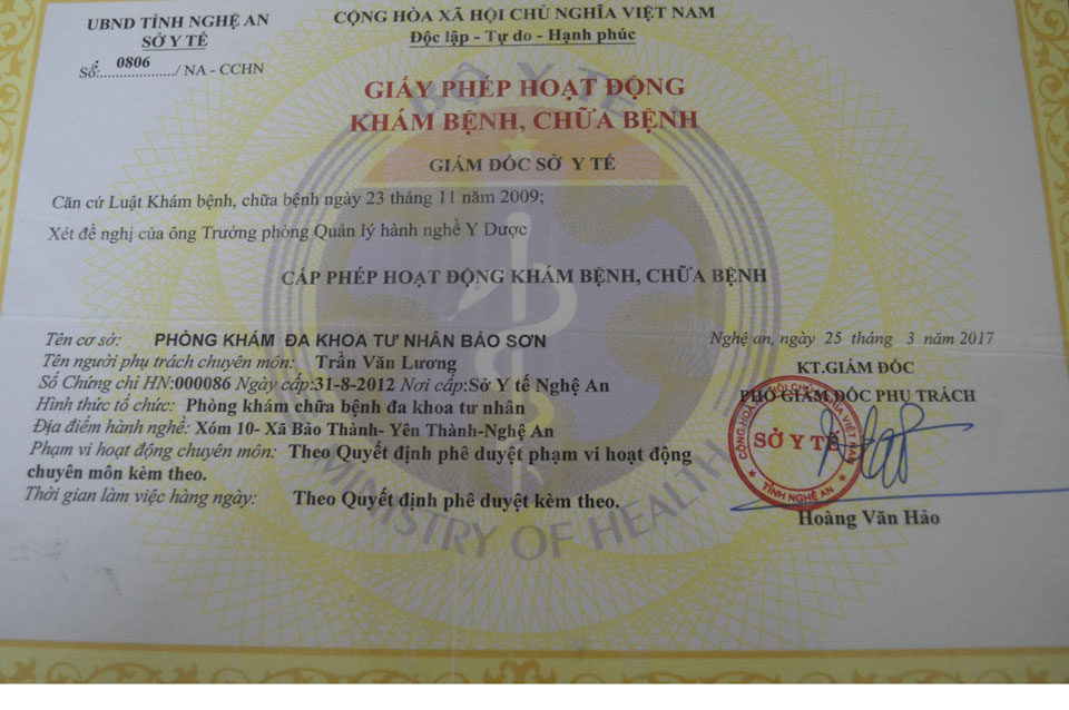 | Giấy phép hoạt động của phòng khám |