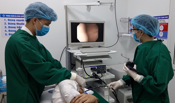 Nhân viên y tế phòng khám Quang Thanh đang thực hiện một ca nội soi vòm họng.