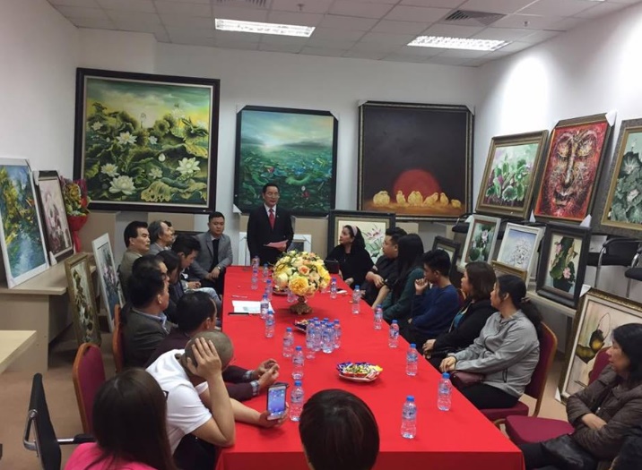 | Tổng biên tập Nguyễn Ngọc Quyết phát biểu khai trương phòng tranh từ thiện và giới thiệu các khách mời tới tham dự |