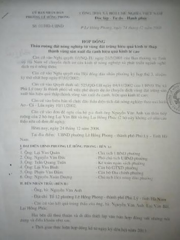 Hợp đồng thuê đất của người dân với UBND phường Lê Hồng Phong