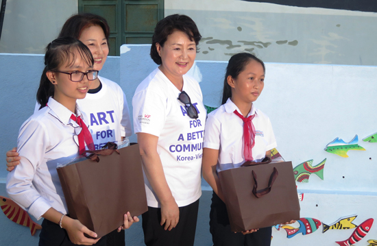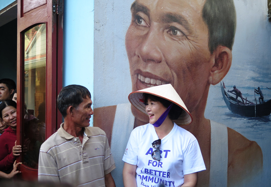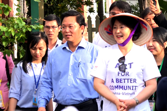 Tại đây, Phu nhân Tổng thống Hàn Quốc Kim Jung Sook đã thăm làng bích họa độc đáo của TP Tam Kỳ, gặp nguyên mẫu của nhân vật trong bức họa và tham gia một số hoạt động cộng đồng như vẽ tranh và gắn những con cá gỗ trên tuyến đường dẫn ra biển.