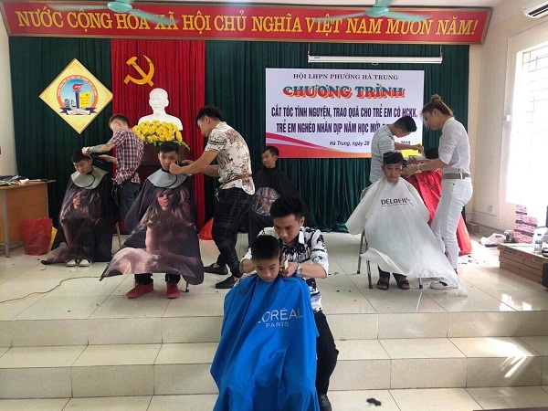 Để giúp các em có niềm vui trọn vẹn đón chào năm học mới cùng các bạn, Hội liên hiệp phụ nữ phường Hà Trung đã vận động, quyên góp từ các hội viên, chị em phụ nữ ở nhiều cơ quan đơn vị đóng trên địa bàn, mua quần áo, sách vở, đồ dùng học tập tặng cho các cháu. Đặc biệt với tình cảm thương yêu các cháu khuyết tật, các cháu có hoàn cảnh khó khăn, một số Salon Tóc trên địa bàn đã tình nguyện được cắt tóc miễn phí cho tất cả các cháu.