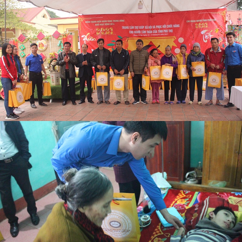 Đoàn thanh niên khối hoạt động số 4 Ngân hàng Trung Ương đến thăm, tặng quà đối tượng nhân dịp Tết Nguyên đán.