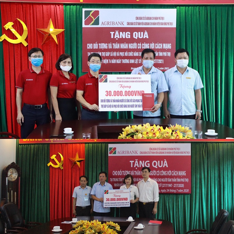 Công đoàn cơ sở thành viên Agribank chi nhánh huyện Đoan Hùng Phú Thọ II đến thăm, tặng quà đối tượng nhân kỷ niệm ngày 27/7.