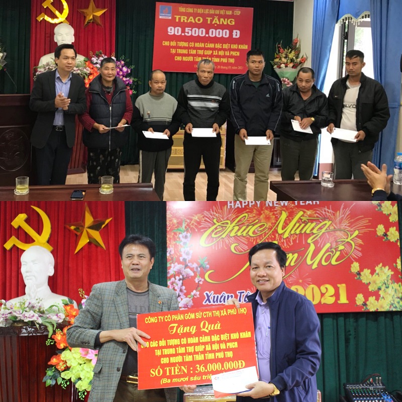 Tổng Công ty điện lực dầu khí Việt Nam, Công ty CP Gốm sứ CTH đến thăm, tặng quà đối tượng nhân dịp Tết Nguyên đán.