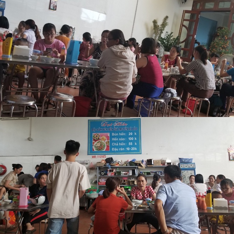 Theo phản ánh của người dân vào 17h30’ chiều ngày 2/7 tại quán Đạt Hiền số lượng khách ra vào ăn lên đến trên 40 người. Các bàn ăn không có khoảng cách, mặt bàn không có vách ngăn, nước rửa tay sát khuẩn tại quán cũng không có, đa số tất cả mọi người tại quán ăn đều không đeo khẩu trang. Chủ quán còn cho biết một buổi chiều quán bán được cả tạ bún và mấy chục kg hến.