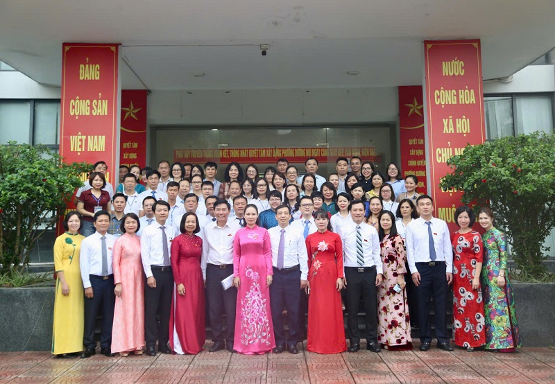 Tập thể cán bộ công chức, viên chức phường Dương Nội trong ngày đầu vận hành chính quyền 2 cấp