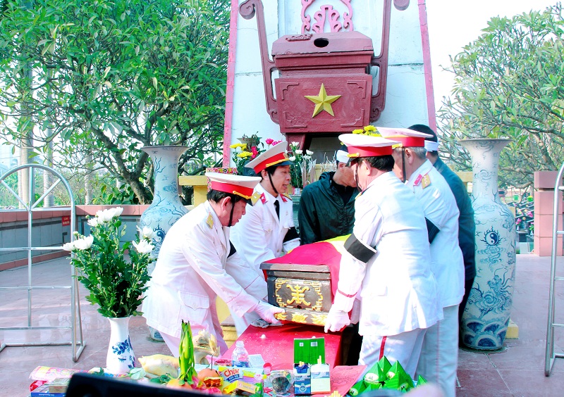 Di quan hài cốt liệt sỹ Trần Văn Khoa về nơi an táng.