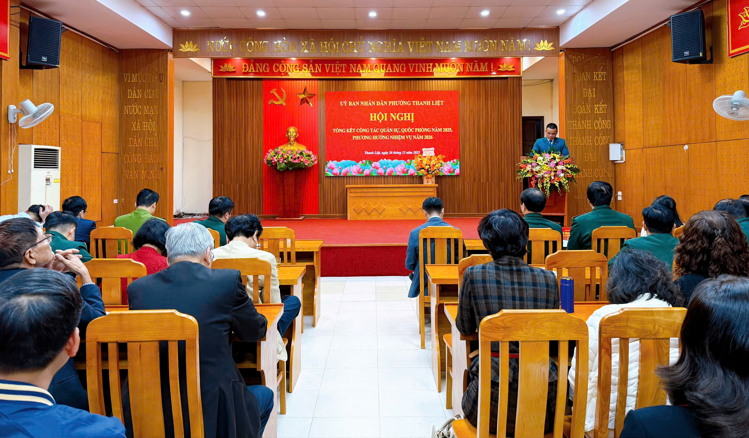 Báo cáo tại hội nghị, đồng chí Triệu Đình Tuyến – Chỉ huy trưởng Ban Chỉ huy Quân sự phường cho biết: Năm 2025, trong bối cảnh thực hiện sắp xếp đơn vị hành chính theo mô hình chính quyền địa phương 02 cấp, công tác quân sự, quốc phòng địa phương của phường Thanh Liệt được triển khai với khối lượng nhiệm vụ lớn. Song, dưới sự lãnh đạo, chỉ đạo của cấp ủy, chính quyền địa phương, Ban Chỉ huy Quân sự phường đã chủ động tham mưu, phối hợp chặt chẽ với Công an phường và các ban, ngành, đoàn thể nắm chắc tình hình địa bàn, duy trì nghiêm chế độ trực sẵn sàng chiến đấu, bảo vệ an toàn các ngày lễ, tết và các sự kiện chính trị quan trọng của đất nước và địa phương, góp phần giữ vững ổn định an ninh chính trị, trật tự an toàn xã hội trên địa bàn.
