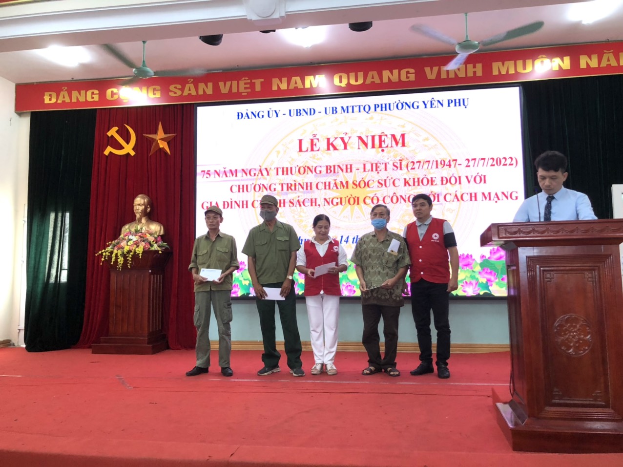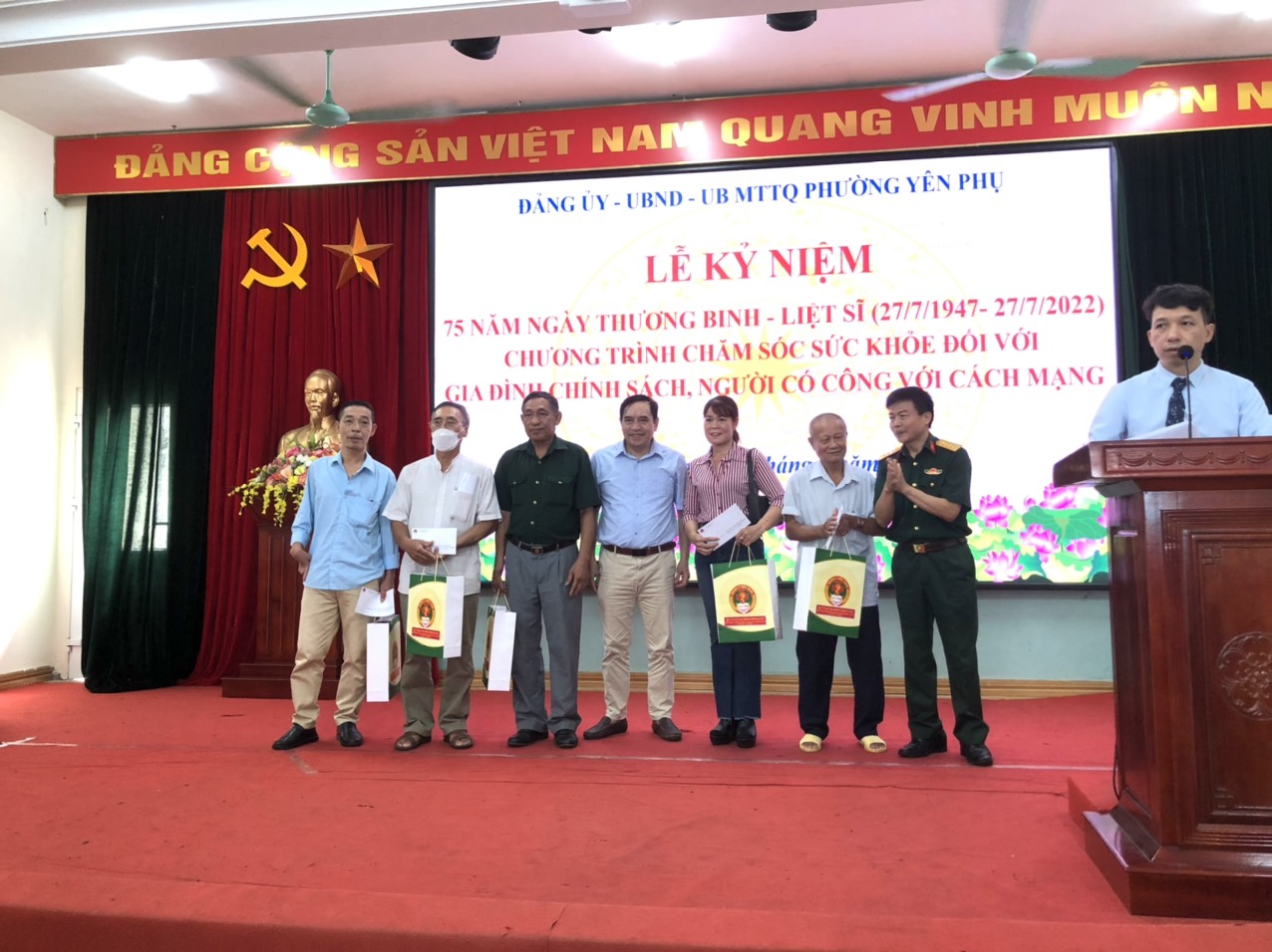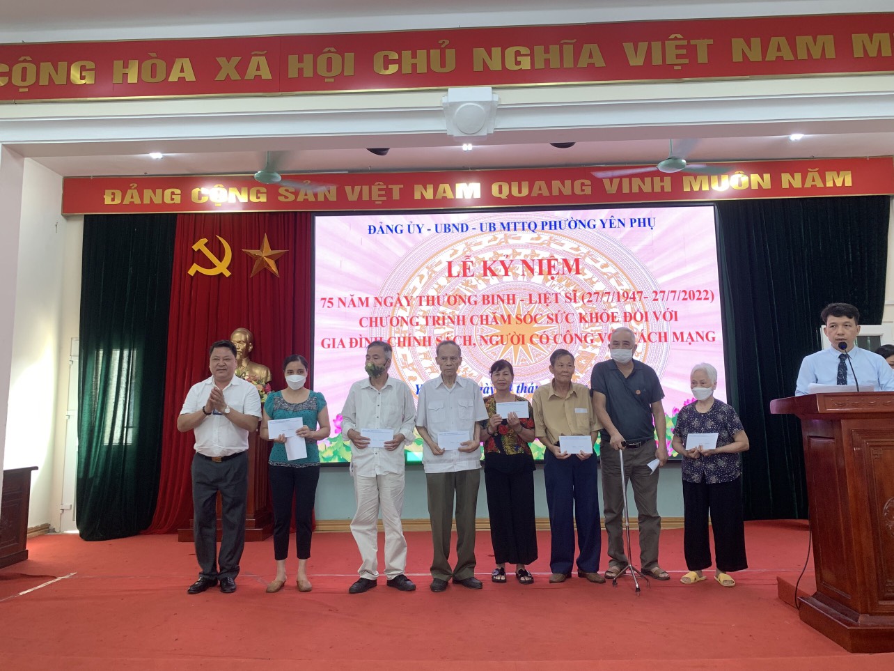 Nhân kỷ niệm 75 năm ngày “Thương binh Liệt sỹ”, được sự chỉ đạo của Đảng ủy, UBND phường đã tổ chức thực hiện chuỗi các hoạt động thiết thực, ý nghĩa như: Thăm, tặng quà người có công và thân nhân liệt sỹ đang điều dưỡng tại Trung tâm nuôi dưỡng, điều dưỡng người có công của Thành phố Hà Nội; Đoàn Lãnh đạo Quận ủy, UBND quận và Đảng ủy, UBND, UBMTTQ phường thăm hỏi, động viên Mẹ Việt Nam Anh hùng Nguyễn Thị Tẹo và một số gia đình thương binh, bệnh binh trên địa bàn phường; Tổ chức trao tặng quà của Chủ tịch nước, của Thành phố, của phường tới 293 đối tượng chính sách; Tổ chức khám bệnh, phát thuốc miễn phí tới 177 thương binh, bệnh binh, thân nhân gia đình liệt sĩ; Thực hiện tốt công tác hỗ trợ xây dựng, sửa chữa nhà ở cho người có công, đề nghị 06 trường hợp hỗ trợ cải tạo sửa chữa nhà trong năm 2022; Tổ chức đoàn đại biểu và thân nhân các gia đình liệt sĩ Thắp nến tri ân các anh hùng liệt sỹ tại Đài tưởng niệm các anh hùng liệt sỹ của phường trong ngày 20/7 vừa qua.