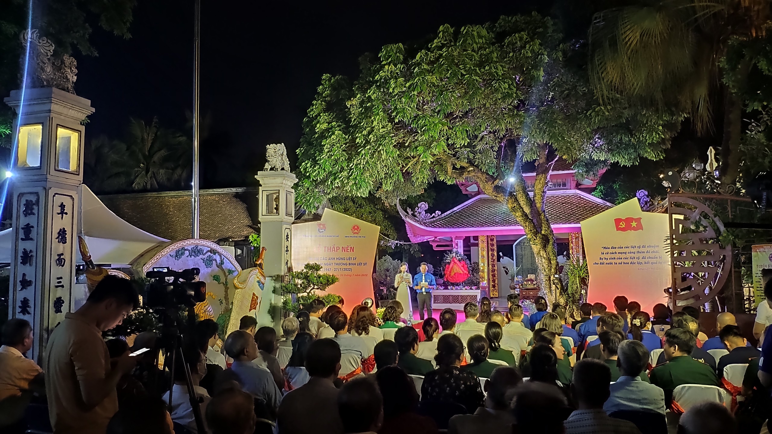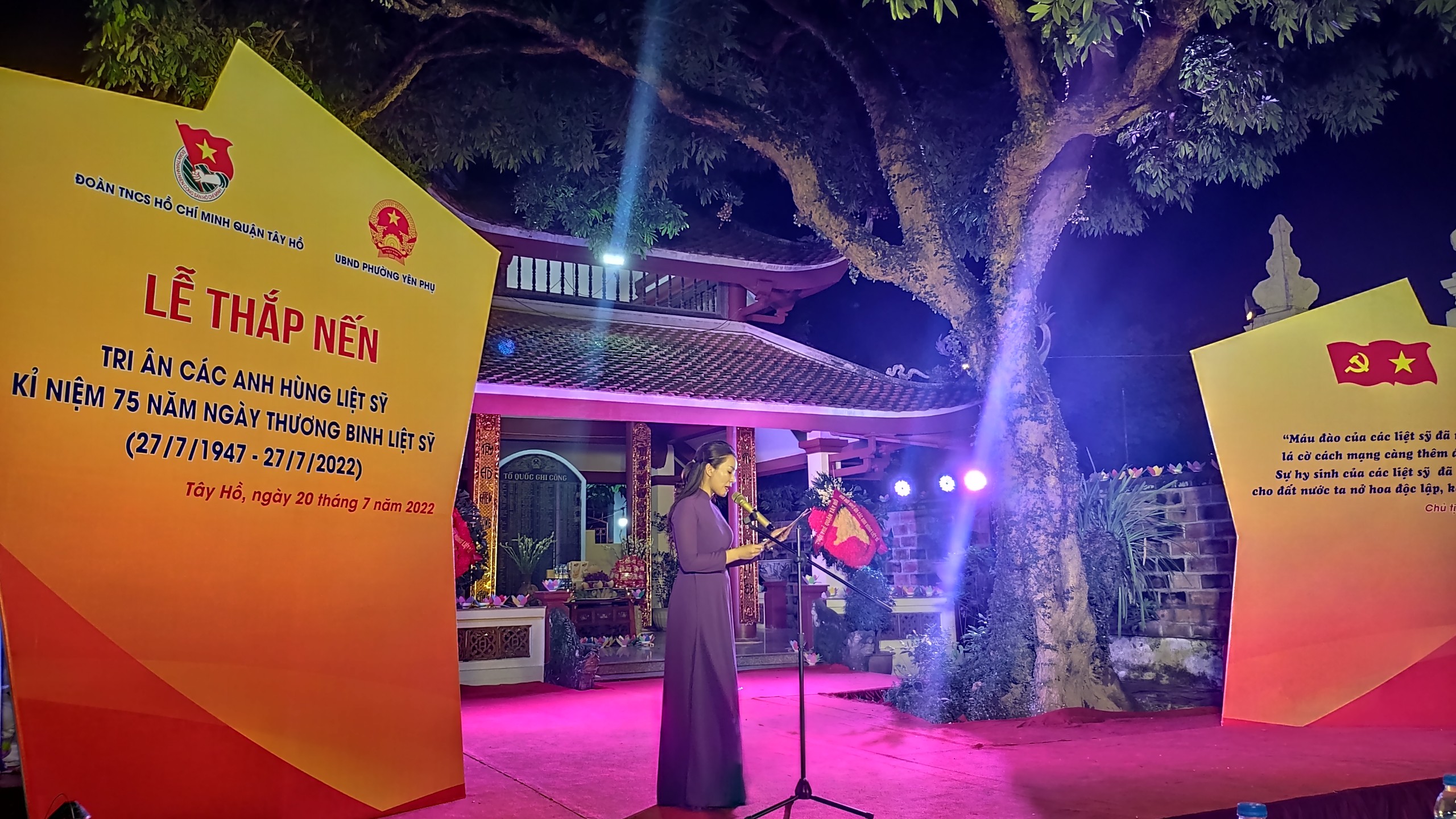 Bà Nguyễn Thị Lan Phương, Phó Chủ tịch UBND quận Tây Hồ phát biểu tại Lễ thắp nến tri ân tại Đài tưởng niệm các Anh hùng Liệt sỹ P. Yên Phụ ngày 20/7/2022.