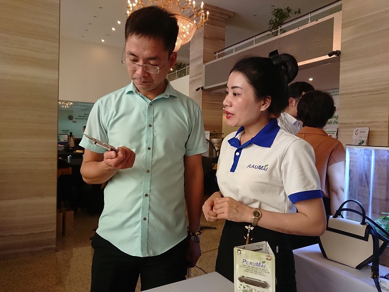 Nhân viên Công ty Plaumai đang tư vấn sản phẩm thân thiện cho khách hàng, doanh nghiệp đơn vị khác.