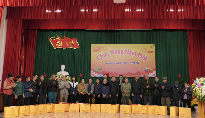 Sau khi kết thúc lễ dâng hương, đoàn đến UBND xã Hiệp Cường và UBND huyện Kim Động để thực hiện chương trình an sinh xã hội, tặng quà Tết cho các hộ gia đình chính sách, gia đình có hoàn cảnh khó khăn tại địa phương nhân dịp Xuân Giáp Thìn 2024. Đoàn công tác đã trao tặng trao 250 suất quà cho người dân có hoàn cảnh khó khăn tại xã Hiệp Cường và 2727 suất quà cho các hộ gia đình chính sách tại huyện Kim Động.