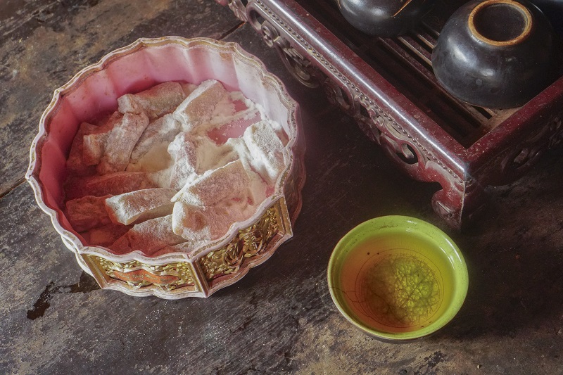 Thưởng thức chè lam, kẹo lạc thì không thể thiếu ấm chè và dăm ba câu chuyện vui. Đến với Đường Lâm, du khách có thể ngồi nán lại bên quán nước sân đình hay trong các nếp nhà cổ, vừa thưởng thức quà quê vừa ngắm nhìn bức tranh làng quê giản dị và mộc mạc với những bức tường đá ong bao quanh các ngôi nhà cổ.