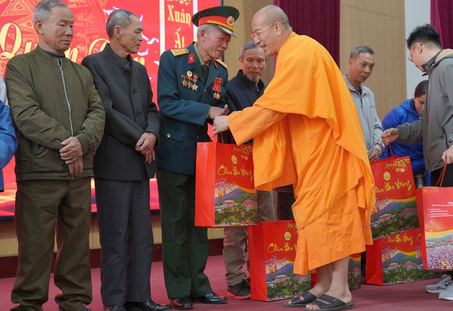 Xuân Ất Tỵ 2025, với chủ đề “Trao quà từ thiện - Kết nối yêu thương” theo đạo Pháp hộ quốc an dân, Tăng Ni - Phật tử chùa Ba Vàng (Quảng Ninh) và Ban Trị sự GHPGVN huyện Minh Hóa đã phối hợp với các cấp chính quyền, các đơn vị tổ chức trao quà Tết cho thương binh, gia đình liệt sĩ, gia đình chính sách, người nghèo tại địa phương.