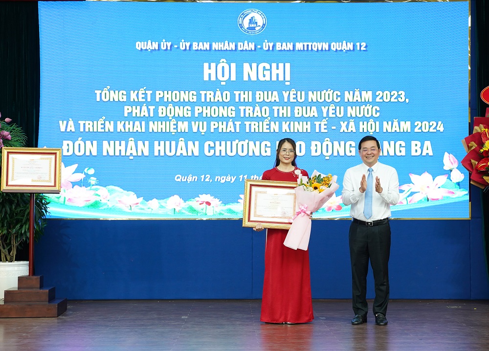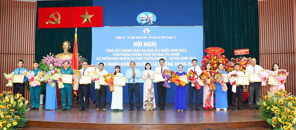 UBND Quận 12 trao tặng Bằng khen đến các cá nhân, tập thể có nhiều đóng góp trong phong trào xây dựng, phát triển địa phương năm 2023.