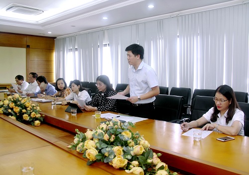 | Đồng chí Nguyễn Văn Sơn - Giám đốc NHCSXH quận Hà Đông báo cáo với đoàn kiểm tra. |