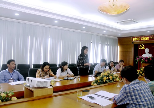 | Đồng chí Phạm Thị Hòa - Phó chủ tịch UBND quận Hà Đông, Trưởng Ban đại diện HĐQT NHCSXH quận phát biểu |