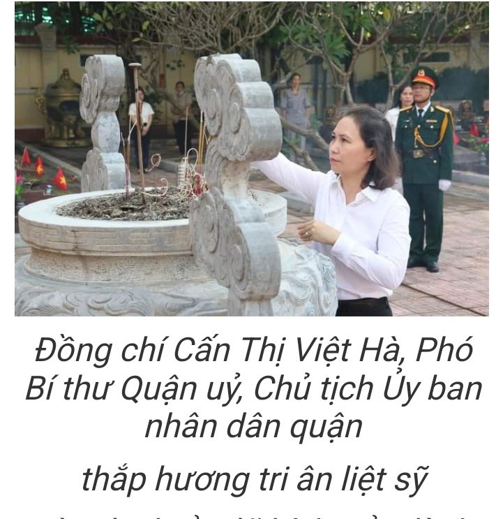 Sau lễ dâng hương, các đồng chí lãnh đạo quận đã thắp hương các phần mộ anh hùng liệt sĩ tại các Nghĩa trang Vạn Phúc, Quang Trung.