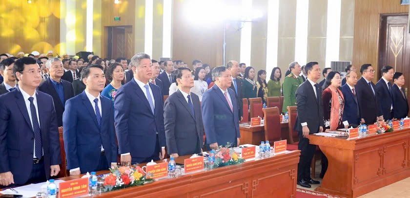 Các đồng chí lãnh đạo thành phố Hà Nội dự buổi lễ (Ảnh: Quang Thái).