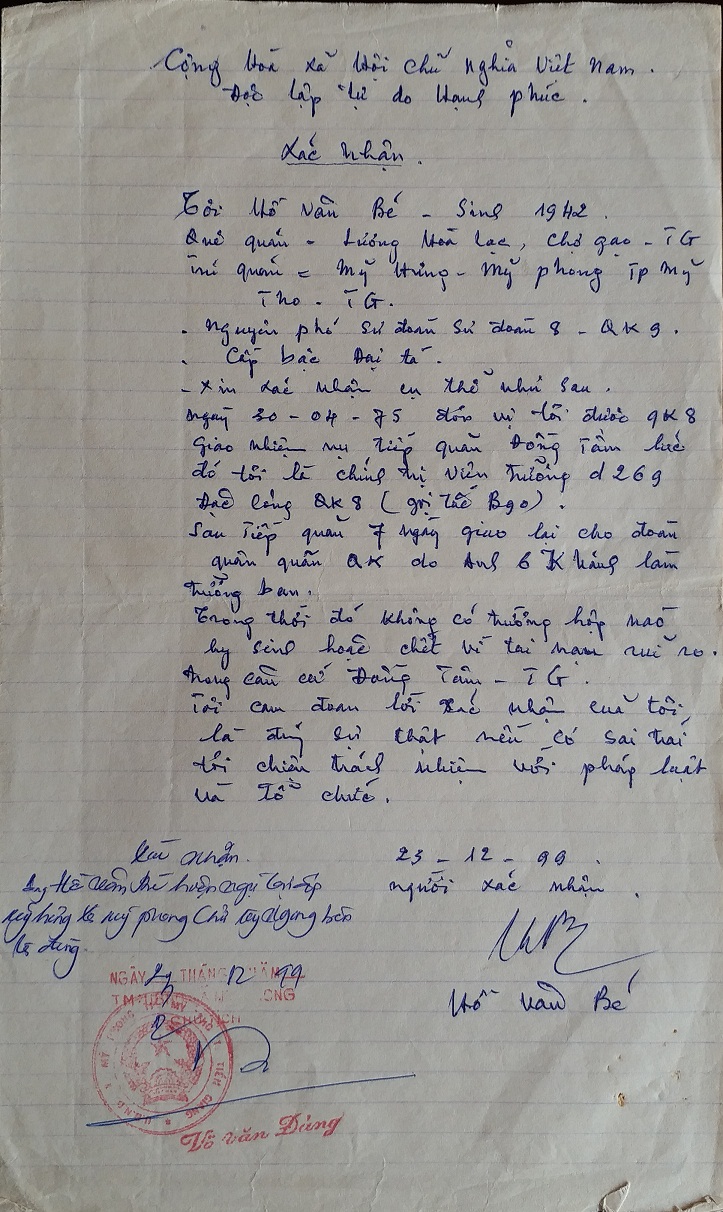 Cha mẹ ạ. Năm nay chúng con ăn Tết cũng vui, vật chất, tinh thần cũng tương đối. Hiện nay con vẫn khỏe. Trong năm 1974, con không nhận được lá thư nào cả. Cũng tại con cả thôi vì đã chuyển đi nơi khác rồi. Hiện giờ con đã về Đồng bằng Sông Cửu Long (miền Trung Nam bộ). Con mới ở Mỹ Tho lên đây được 3 tháng. Hiện chưa đi công tác đâu cả.