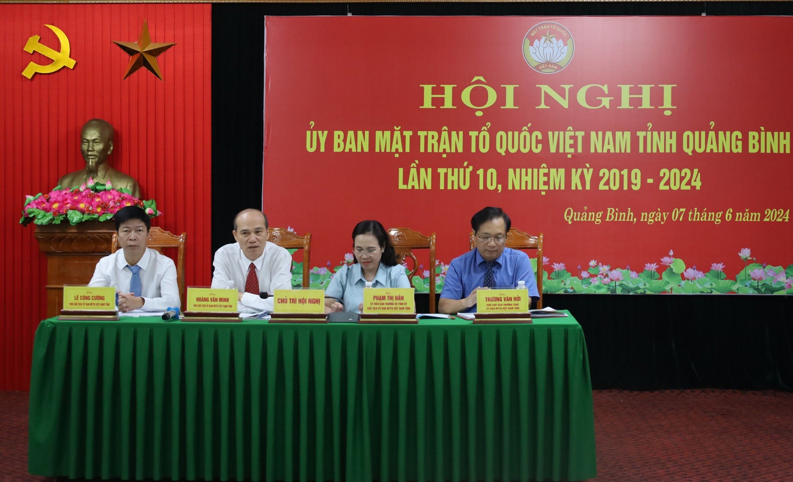 Uỷ ban MTTQ Việt Nam tỉnh Quảng Bình tổ chức hội nghị lần thứ 10, nhiệm kỳ 2019 - 2024 để đánh giá kết quả hoạt động 6 tháng đầu năm 2024, triển khai một số nhiệm vụ trọng tâm 6 tháng cuối năm 2024 và một số nội dung, văn kiện chuẩn bị cho Đại hội đại biểu MTTQ tỉnh Quảng Bình lần thứ XIV, nhiệm kỳ 2024 - 2029.