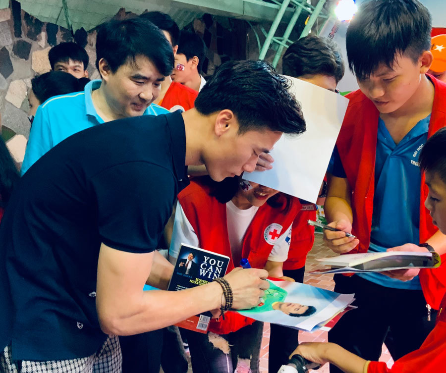 | Cầu thủ trẻ xuất sắc nhất 2018 - Đoàn Văn Hậu ký tặng cuốn sách 'Không bao giờ là thất bại - Tất cả chỉ là thử thách' |