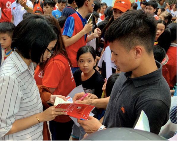 Trước giờ các ngôi sao bóng đá Việt Nam trong đội tuyển U23 thường xuất hiện trong các buổi giao lưu nồng nhiệt, các buổi đón tiếp mừng công với hàng chục ngàn người hâm mộ sau những trận thi đấu vắt kiệt sức, căng thẳng, lịch luyện tập dầy đặc - và đây là lần đầu tiên người ta thấy ba cầu thủ nổi tiếng Quang Hải, Bùi Tiến Dũng và Đoàn Văn Hậu xuất hiện ở một trại mồ côi, bụi đời ở tỉnh Bình Dương để trao tặng những xuất học bổng gồm 180 triệu tiền của cá nhân các cầu thủ và ký tặng những cuốn sách "Hạt giống tâm hồn" cùng đá bóng, giao lưu rất thân thiện, hoà đồng với các em mồ côi ở đây.