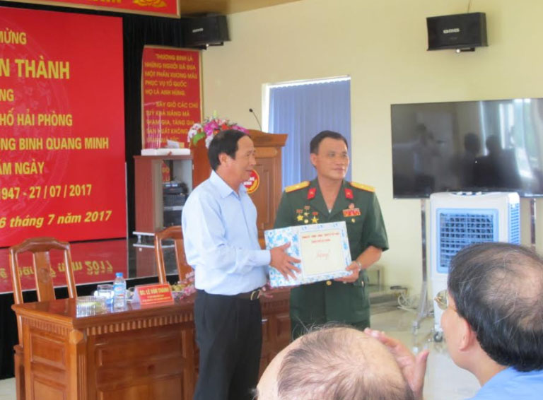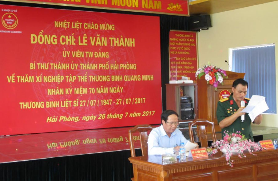 Phát biểu với cán bộ, thành viên và người lao động của Xí nghiệp tập thể thương binh Quang Minh, đồng chí Lê Văn Thành - Ủy viên Trung ương Đảng, Bí thư Thành Ủy, Chủ tịch Hội Đồng Nhân Dân Thành Phố Hải Phòng ghi nhận những đóng góp tích cực của Xí nghiệp vào sự nghiệp xây dựng và bảo vệ Thành phố, nhất là trong công tác chăm sóc thương binh, gia đình Liệt sỹ, gia đình có công với tổ quốc.