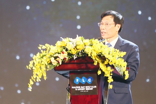 Đồng chí Nguyễn Ngọc Thiện, Bộ trưởng Bộ Văn hóa, Thể thao và Du lịch, Trưởng Ban chỉ đạo Năm Du lịch quốc gia 2018 phát biểu tại buổi lễ.