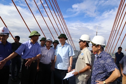 Tại công trình, đồng chí Chủ tịch UBND tỉnh Nguyễn Đức Long yêu cầu chủ đầu tư cầu Bạch Đằng cần tranh thủ thời tiết thuận lợi, đôn đốc các đơn vị thi công, đẩy nhanh tiến độ hoàn thiện những hạng mục còn lại của công trình. Trong đó khẩn trương xảm các khe co giãn bản cầu còn lại, thảm nhựa lớp cuối và sơn kẻ ký hiệu giao thông mặt cầu. Đồng chí cũng giao Công an tỉnh bố trí lực lượng ở các điểm đầu, cuối tuyến và ở các nút giao, nghiêm cấm toàn bộ phương tiện lưu thông qua đây, nhằm đảm bảo an toàn và tiến độ thi công của công trình.