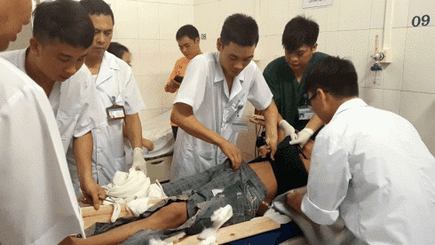| Các nạn nhân được đưa đến cấp cứu tại Trung tâm Y tế Móng Cái. (Ảnh: Intenet) |