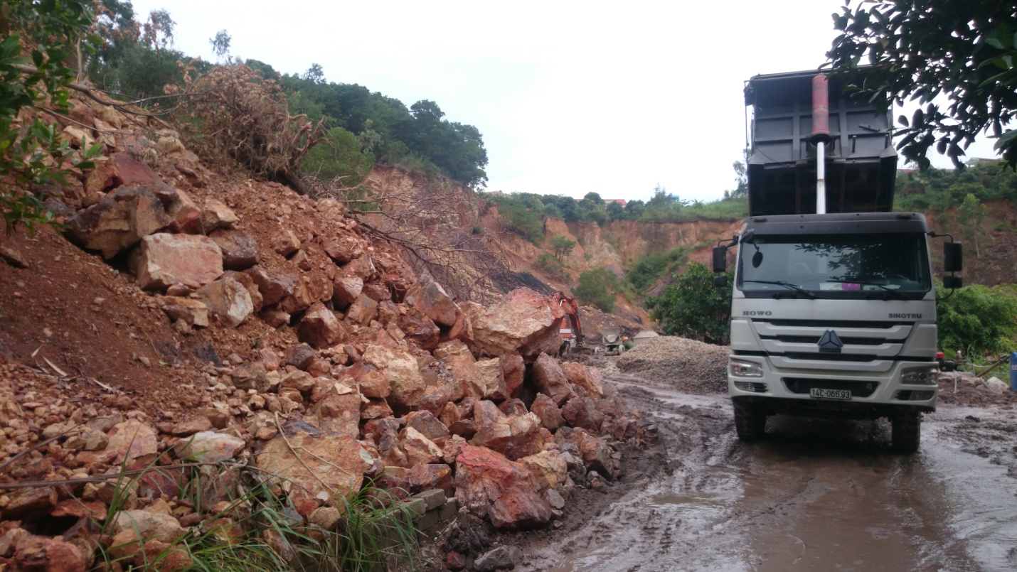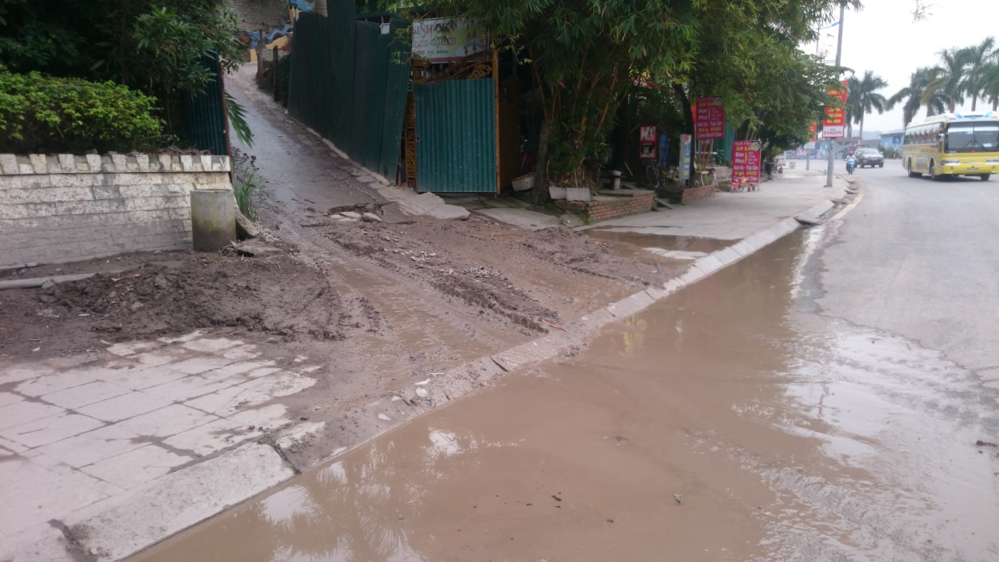 Đất, bùn từ Dự án này chảy xuống con đường dẫn vào khu du lịch.