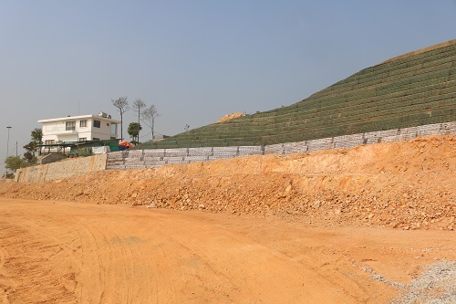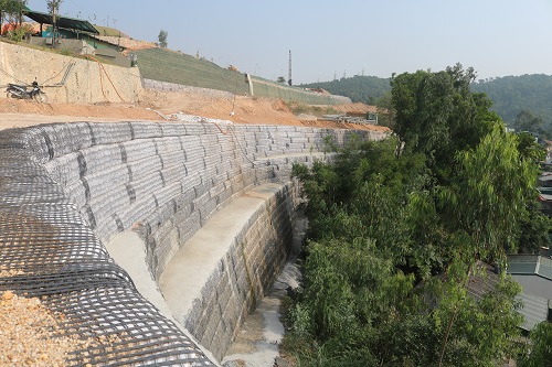 Các tầng kè lưới địa kỹ thuật đảm bảo độ an toàn cho các hộ dân lân cận.