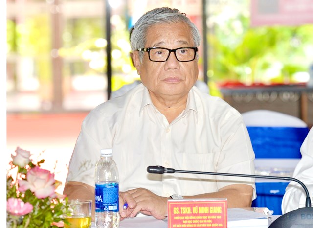 Giáo sư, Tiến sĩ Vũ Minh Giang trình bày bóa cáo khoa học tại Hội thảo.