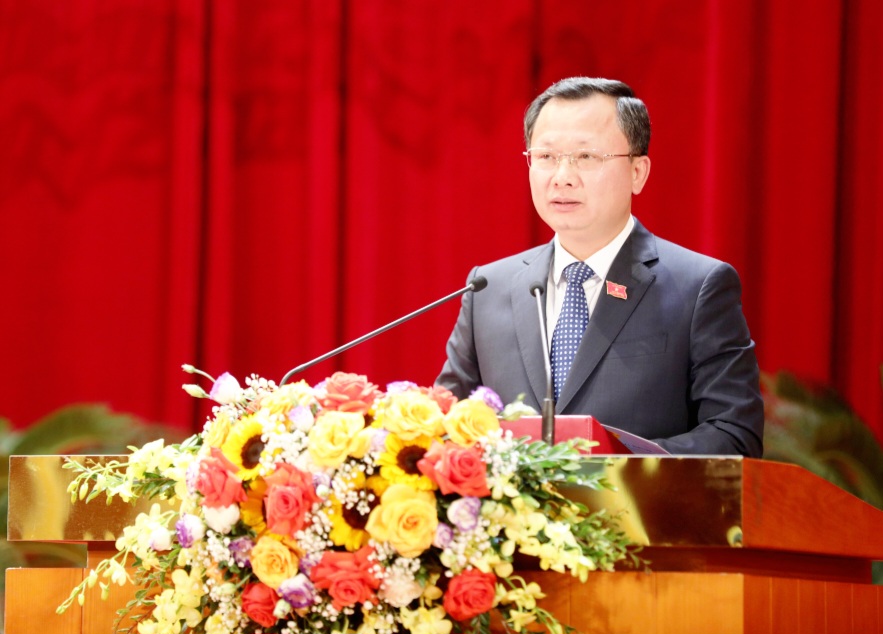 Đồng chí Nguyễn Xuân Ký, Ủy viên Trung ương Đảng, Bí thư Tỉnh ủy, Chủ tịch HĐND tỉnh đọc tờ trình giới thiệu đồng chí Cao Tường Huy, Phó Bí thư Tỉnh ủy, Quyền Chủ tịch UBND tỉnh ứng cử chức vụ Chủ tịch UBND tỉnh, nhiệm kỳ 2021-2026.