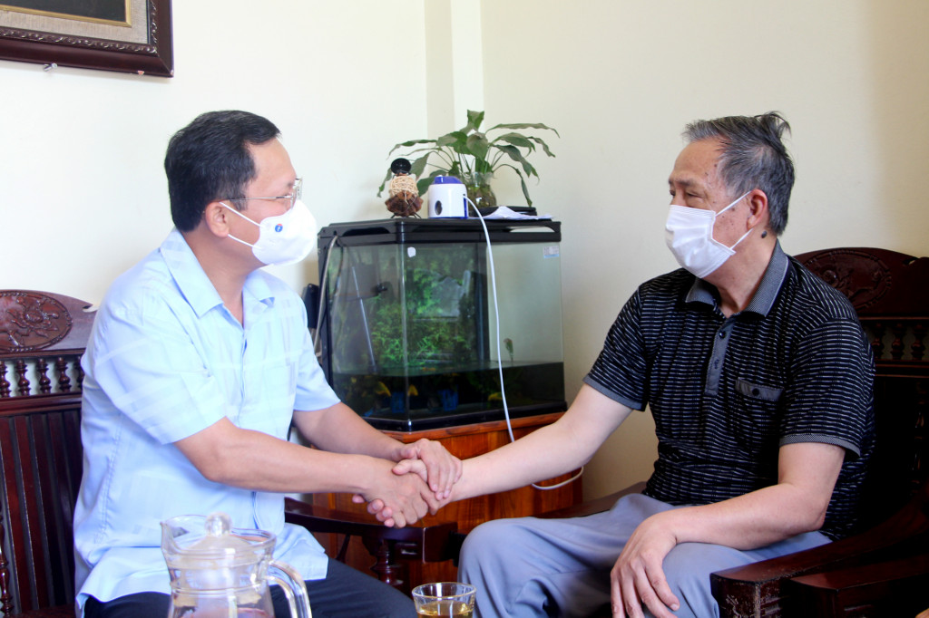 Tại huyện Vân Đồn, đồng chí Phó Chủ tịch Thường trực UBND tỉnh Cao Tường Huy đã tới thăm, tặng quà bà Đinh Thị Liễu, mẹ liệt sĩ ở thôn 9, xã Hạ Long, Thương binh Nguyễn Văn Tý, khu 6, thị trấn Cái Rồng; bệnh binh Lê Viết Thang, thôn Đông Thịnh, xã Đông Xá.