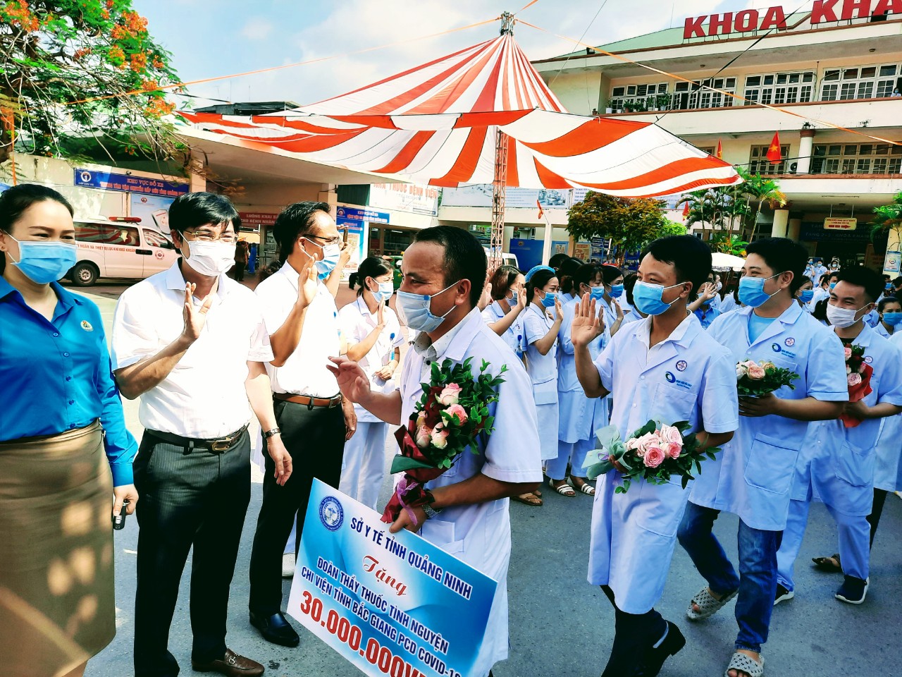 Trước diễn biến phức tạp của dịch Covid-19 tại Bắc Giang, ngày 15/5 tỉnh Quảng Ninh đã cử đoàn 200 y, bác sĩ xuất quân lên hỗ trợ Bắc Giang phòng chống dịch. Đợt 2 này, tỉnh quyết định tiếp tục cử Đoàn công tác tình nguyện gồm 20 cán bộ, y, bác sĩ, trong đó có 6 bác sĩ, 12 điều dưỡng, 2 kỹ thuật viên xét nghiệm hiện đang công tác tại Bệnh viện Việt Nam - Thụy Điển Uông Bí; Bệnh viện Đa khoa tỉnh, Bệnh viện Sản Nhi, Bệnh viện Bãi Cháy, Bệnh viện Đa khoa khu vực Cẩm Phả; Bệnh viện đa khoa Cẩm Phả cùng với các trang thiết bị hiện đại hỗ trợ tỉnh Bắc Giang xét nghiệm, phòng, chống Covid-19. Đây đều là những y, bác sĩ đã có kinh nghiệm trong chống dịch, cũng như có năng lực chuyên môn tốt, sẵn sàng đem những kiến thức, kinh nghiệm để hỗ trợ điều trị cho những bệnh nhân Covid-19 nặng tại Bắc Giang.
