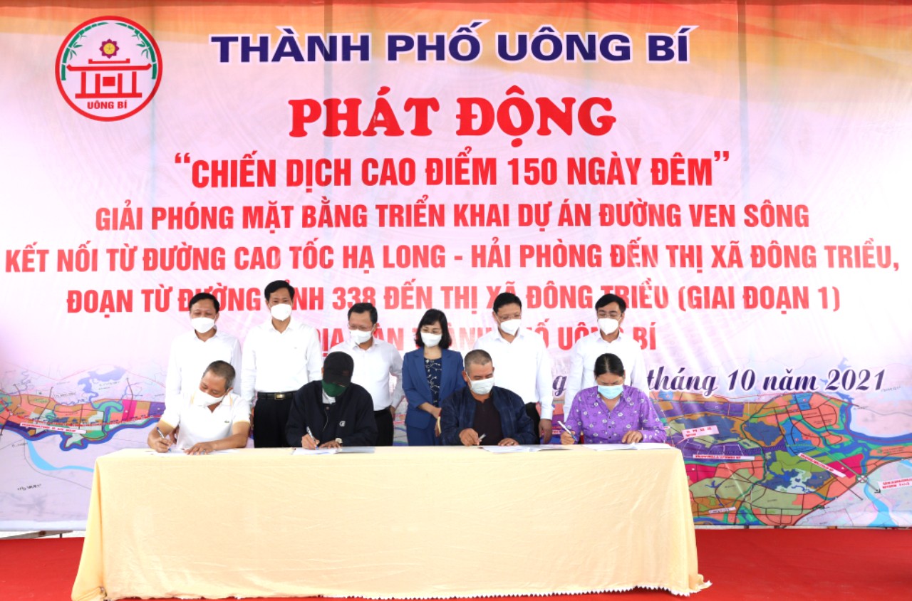 Tại lễ phát động, các đồng chí lãnh đạo thành phố Uông Bí và thị xã Đông Triều đều bày tỏ quyết tâm, quyết liệt trong chỉ đạo công tác GPMB. Theo đó, địa phương đã thành lập Ban chỉ đạo GPMB do trực tiếp các đồng chí lãnh đạo đứng đầu địa phương là Trưởng ban; thực hiện phân công nhiệm vụ cụ thể cho các đồng chí thành viên Ban chỉ đạo chịu trách nhiệm đối với từng khu vực cụ thể; thành lập các tổ công tác, bám sát địa bàn để kịp thời vận động, hỗ trợ và giải quyết những vướng mắc phát sinh. Bên cạnh đó, huy động sự vào cuộc của cán bộ, công chức, viên chức các tổ chức chính trị xã hội, đoàn thể quần chúng, cơ quan, đơn vị và các tầng lớp nhân dân thuộc diện GPMB, phát huy tiên phong, gương mẫu của các cán bộ đảng viên, người có uy tín tại khu dân cư. Cả hai địa phương đều đặt mục tiêu hoàn thành thu hồi đất nông nghiệp, đất nuôi trồng thủy sản; hoàn tất quy trình thu hồi các loại đất khác và cơ bản triển khai thi công xây dựng khu tái định cư, di dời các công trình hạ tầng kỹ thuật; hoàn thành 50% diện tích mặt bằng triển khai Đường ven sông kết nối cao tốc Hạ Long - Hải Phòng đến thị xã Đông Triều